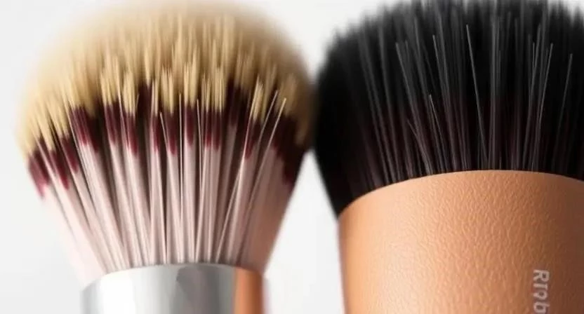 Синтетический ворс (нейлон, таклон) более гигиеничен, прост в уходе и подходит для кремовых и жидких текстур. Он не вызывает аллергии и более доступен по цене.