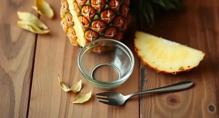 - Возьмите небольшой кусочек спелого ананаса (около 50 грамм).