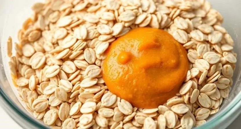 - Смешайте тыквенное пюре, овсяные хлопья и молоко.