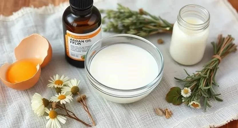 - Маска с яйцом: Взбейте 1 яйцо с 1 столовой ложкой оливкового масла. Нанесите на влажные волосы на 20 минут, затем смойте теплой водой. Яйцо содержит протеины, которые восстанавливают структуру волос.