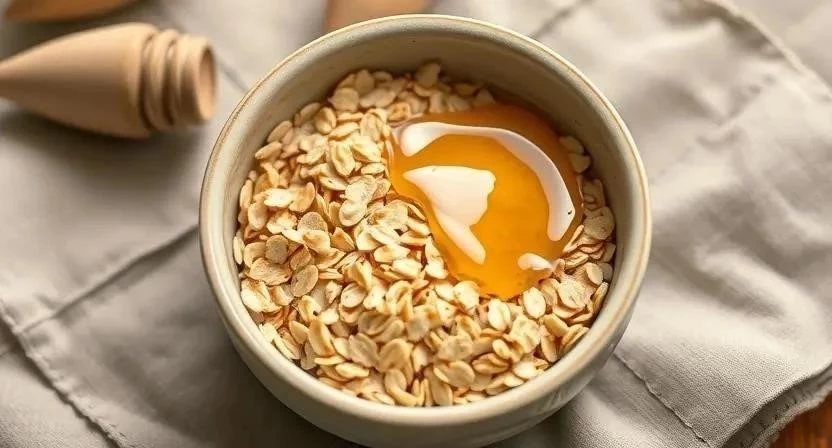 Омолаживающая маска: Смешайте 2 столовые ложки овсяных хлопьев, 1 столовую ложку меда и 1 чайную ложку оливкового масла. Нанесите на лицо на 20-25 минут, затем смойте теплой водой.