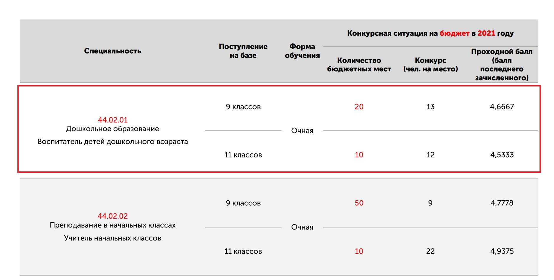 - 44.02.04 «Специальное дошкольное образование» — подготавливает профессионалов по работе с детьми с отклонениями в развитии и детей с сохранным развитием, возможно стать психологом, воспитателем и преподавателем;