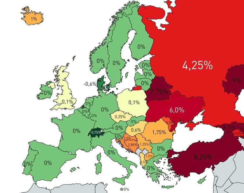Процентные ставки центральных банков в Европе, июль 2020 г