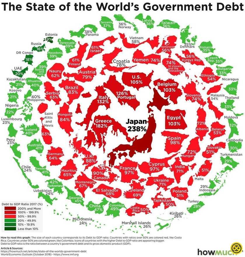 Отношение госдолга к ВВП страны, 2017 г.