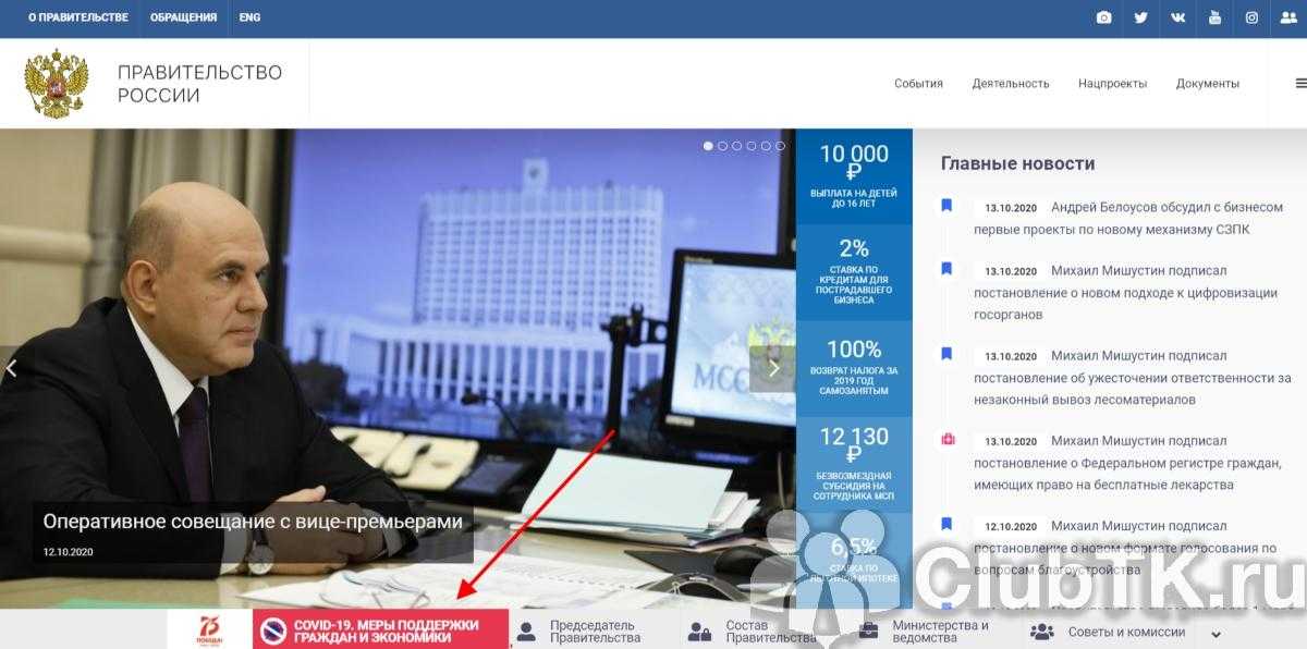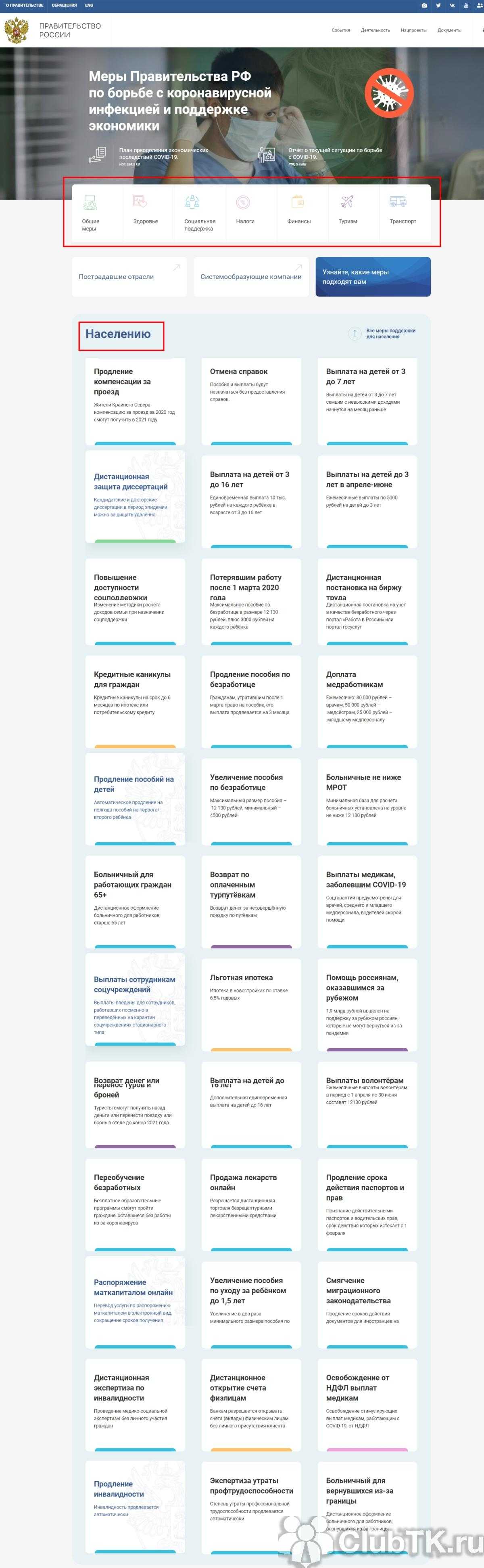Шаг 2. Найти раздел «Меры поддержки граждан и экономики».