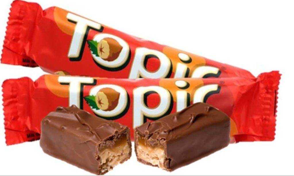 Еще один популярный батончик из 90-х, это «TOPIC». Из серии «Mars», он содержал прекрасный молочный шоколад, а внутри находилась нуга, мягкая карамель и обязательно лесной орех. Кто уже не помнит вкуса этой сладости, возможно еще не забыл рекламу, которая вещала, что даже в маленьком кусочке батончика находился лесной орех.