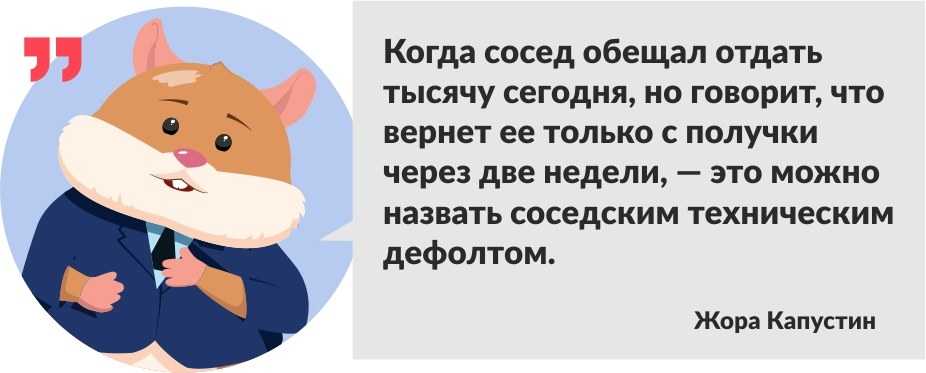 Технический дефолт (именно такой случился с Россией в августе 1998 года) — еще не банкротство. Это момент, когда заемщик прямо сейчас выплатить долг не может, но в будущем готов все отдать.