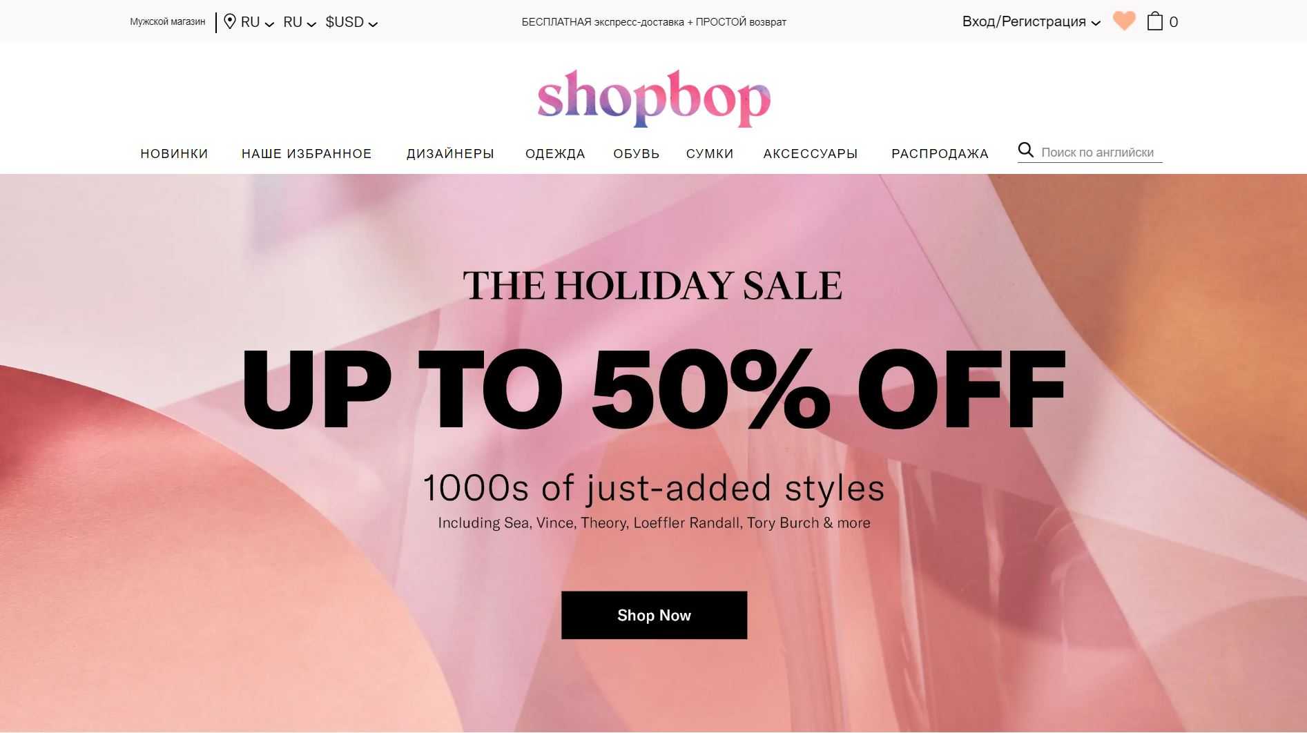 ASOS бесплатно доставляет в Россию покупки на сумму от 2000 рублей. Магазин регулярно устраивает акции и распродажи.