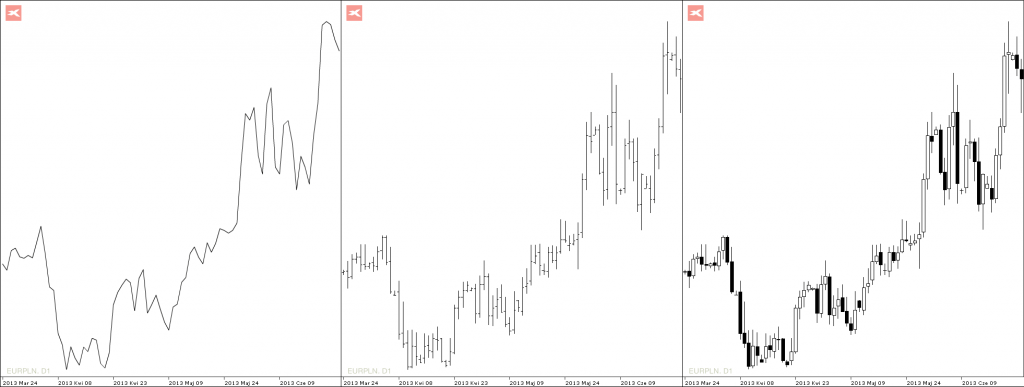 Линейный график дает наименьшую информацию из них. Линия соединяет только цены закрытия.