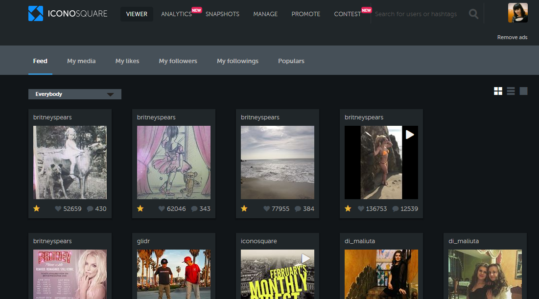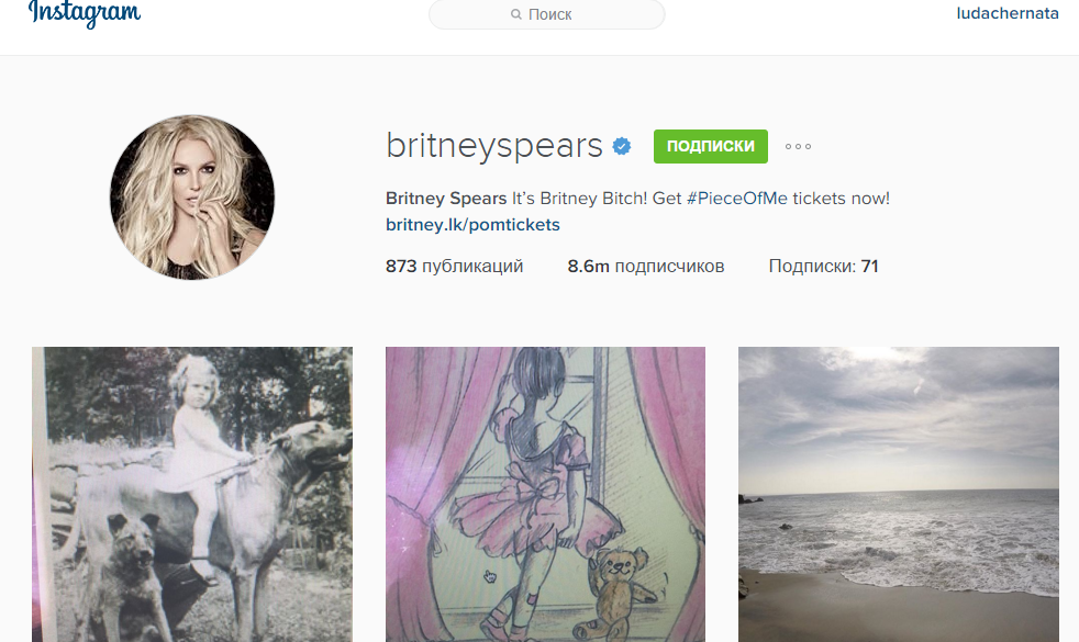 Первым делом заходим на Instagram.com, авторизуемся, переходим на страницу пользователя, фотками которого мы хотели бы поделиться с другими.