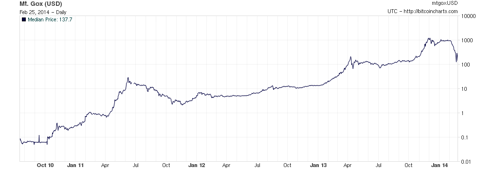 Динамика курса биткоина в 2008-2010 гг.