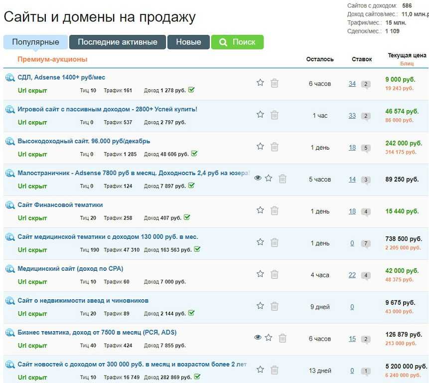 Сайты, выставленные на продажу на Телдери.