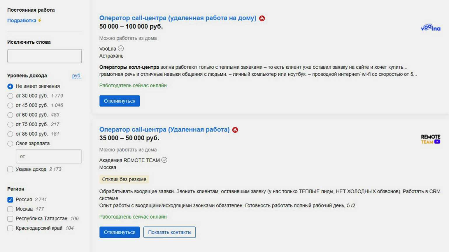 На вакансии с зарплатой от 30 тысяч могут претендовать люди без опытаСкриншот: HeadHunter