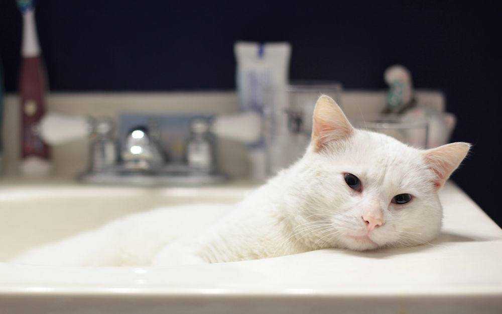 Также можно окунуть кота в раковину, ванную или тазик с прохладной (не холодной!) водой: просто посадите питомца туда, чтобы тело было в воде, а голова торчала над водой. И хорошо держите, т.к. кот находится в неадекватном состоянии.