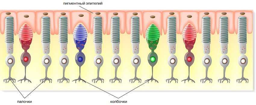 - Так называемые колбочки позволяют увидеть мир при свете солнца и дают остроту зрения в течение светового дня. С их помощью человек видит мир цветным.