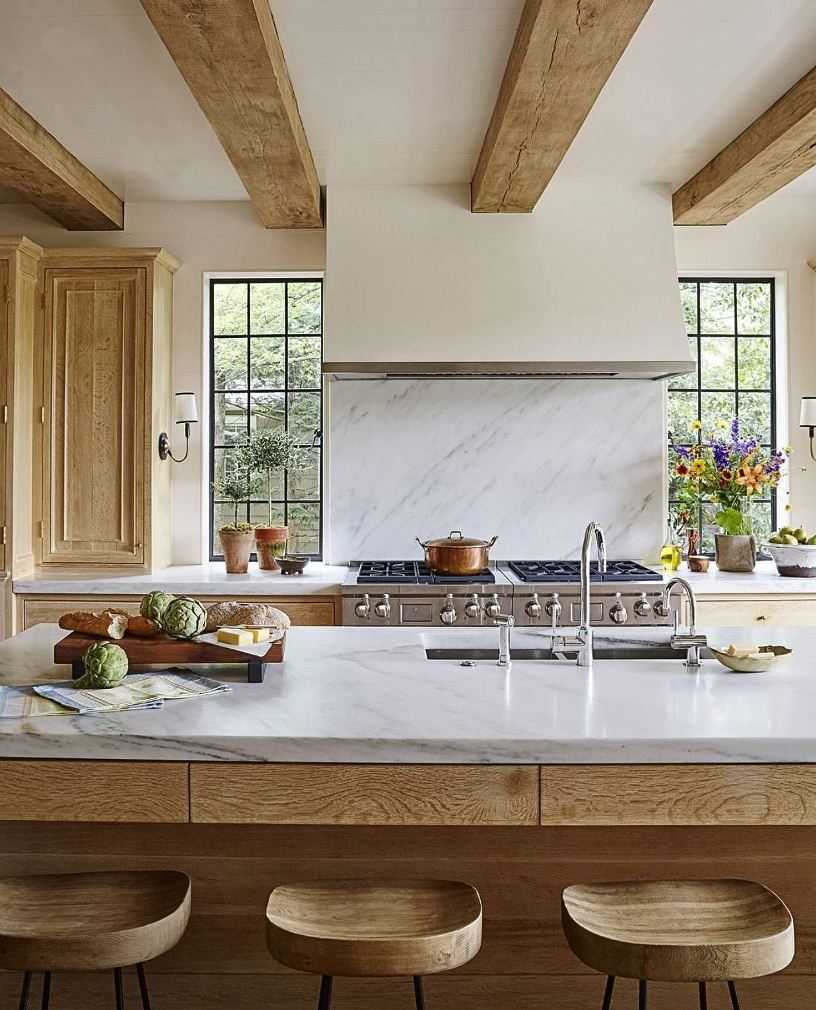 - Вытяжные трубы — их размещают обычно прямо над плитой у стены. Это конструкции с вытяжным шкафом, оснащенным очень эстетичным вертикальным дымоходом, в котором спрятана труба, уводящая загрязнения наружу дома. Их достоинства: высокая эффективность и красивый внешний вид. Такие трубы часто делают красивой, нестандартной формы, а поверхности украшают деревом и даже резьбой;