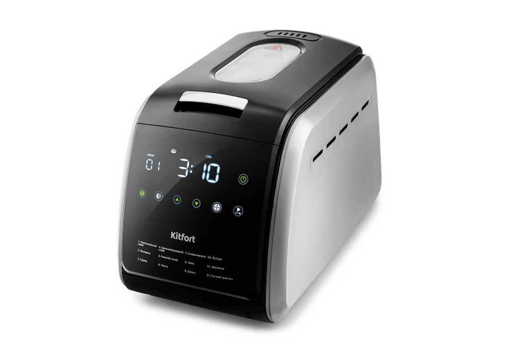 Мощность прибора — 0,55 кВт. Помимо выпечки позволяет делать варенье, йогурт, напитки, суп, молочную кашу. Предусмотрена как варка, так и тушение. Присутствуют функции регулировки массы изделия и выбора цвета корочки. Есть таймер и ускоренная выпечка. Как и другие рассмотренные модели, позволяет поддерживать температуру по окончанию процесса приготовления в течение 1 ч. При сбое электропитания предусмотрен запас памяти на 10 минут. Имеется подсветка дисплея. Корпус выполнен из металла. Предусмотрен пользовательский режим, позволяющий применять собственные настройки и рецептуру.