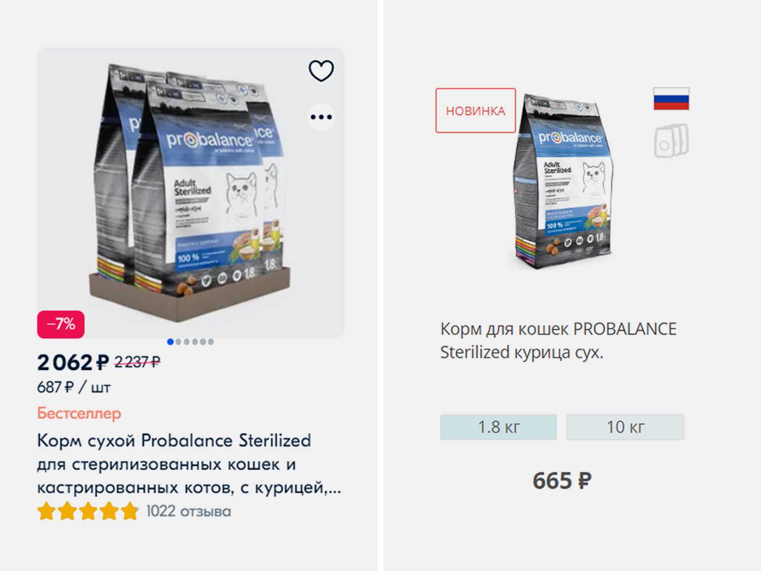 Даже с учётом скидки и покупки нескольких кормов сразу, в другом магазине цена на тот же товар нижеСкриншоты: OZON и «Бетховен»