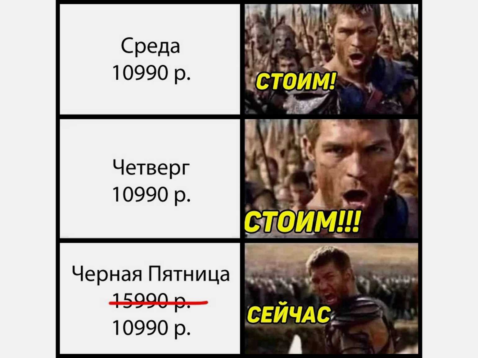 Распродажи — тоже средство манипуляции. В день самой популярной распродажи мира — чёрную пятницу — соцсети переполняются фотографиями акционных цен. Часто они либо не сильно меньше обычных, либо цена до скидки завышена.