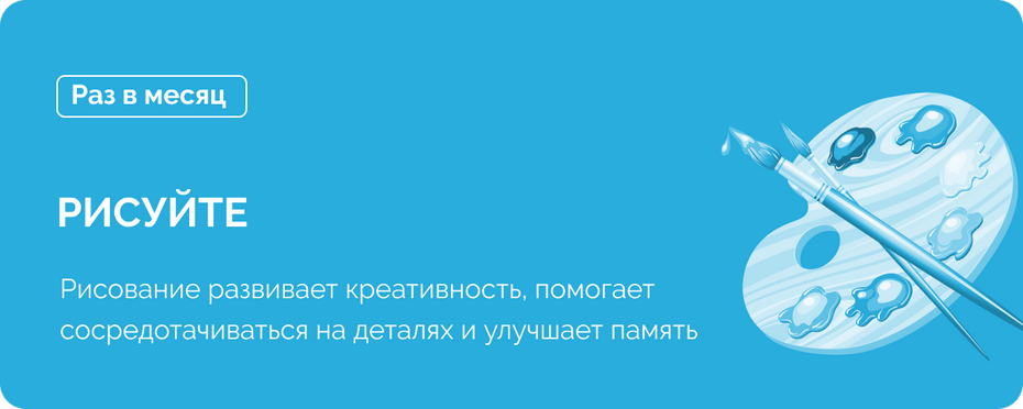 Чем полезно? Когда человек рисует, его мозг, подобно внутреннему художнику, решает, каким будет следующий взмах кисти. Рисование развивает креативность, помогает сосредотачиваться на деталях и улучшает память.