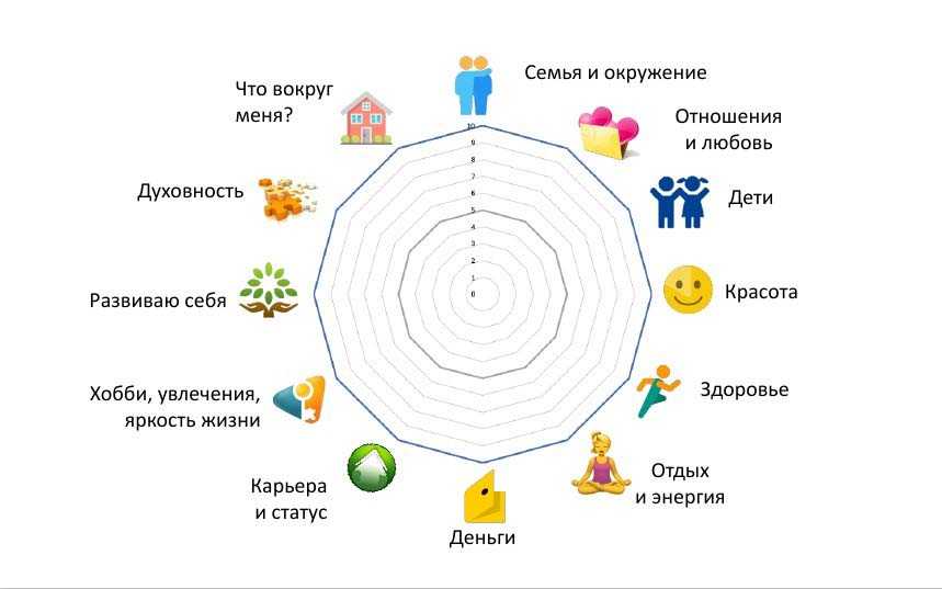 А также следует обдумать свой вклад в мир и как он может при этом измениться. Такая система достижения целей будет представлена в виде распределенных по важным жизненным направлениям ресурсов.