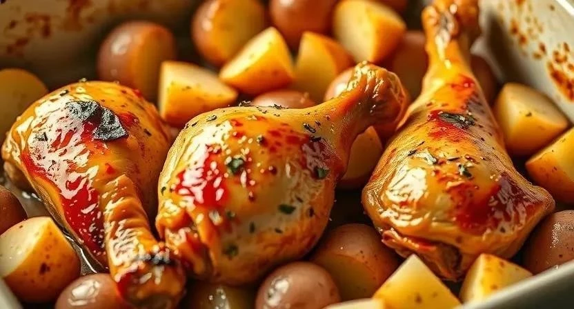 Рецепт 2: Запеченные куриные бедрышки с картофелем в духовке