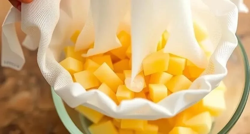 2. Тщательно отожмите картофельную массу через марлю или полотенце, чтобы удалить лишнюю жидкость. Это очень важный шаг!