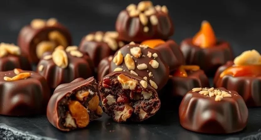 | Домашнее шоколадное конфеты | Шоколадная масса, орехи, сухофрукты, ваниль | 1 час |