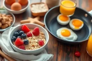 | Овсяная каша на миндальном молоке | Овсяные хлопья, миндальное молоко, фрукты, мед | 15 минут | Легко |