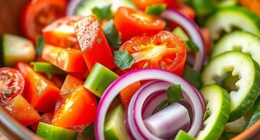 Рецепт 1: Классический салат с помидорами и огурцами