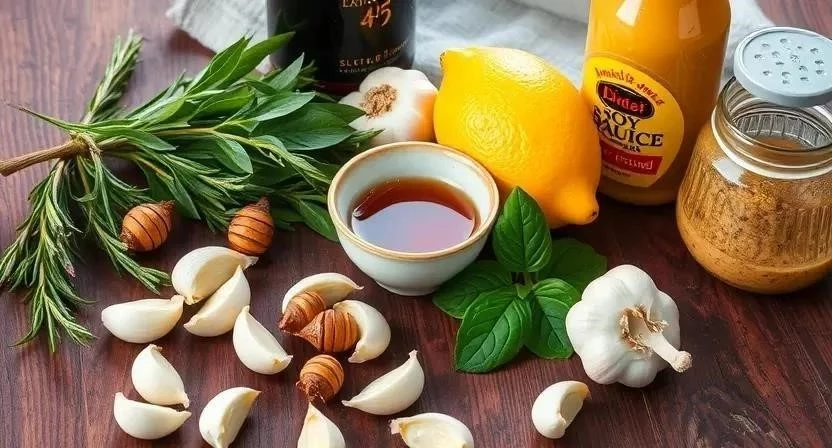- Маринад с соевым соусом и имбирем: Смешайте 4 ст.л. соевого соуса, 1 ст.л. тертого имбиря, 1 зубчик измельченного чеснока и немного меда.