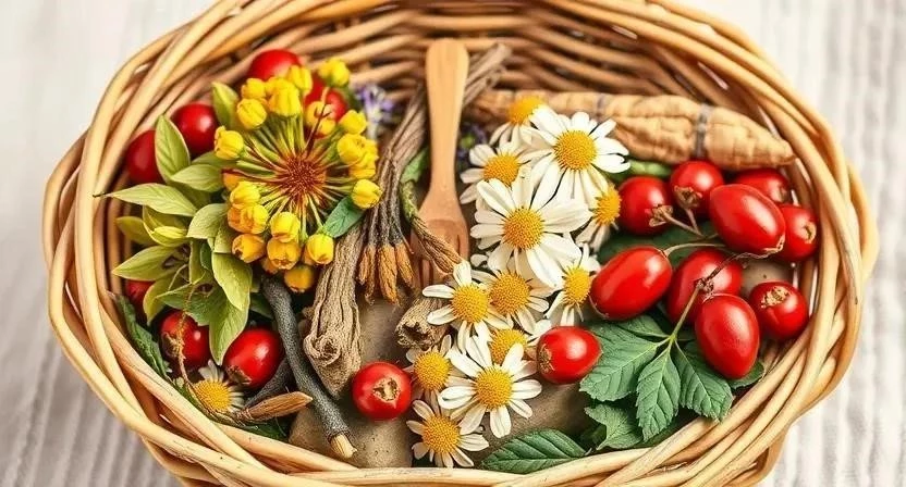 - Шиповник: богат витамином C, укрепляет иммунитет, помогает при простудных заболеваниях.