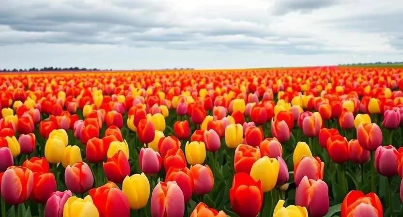 - Поля вокруг Лейдена: Традиционный регион выращивания тюльпанов, с множеством небольших ферм и полей.