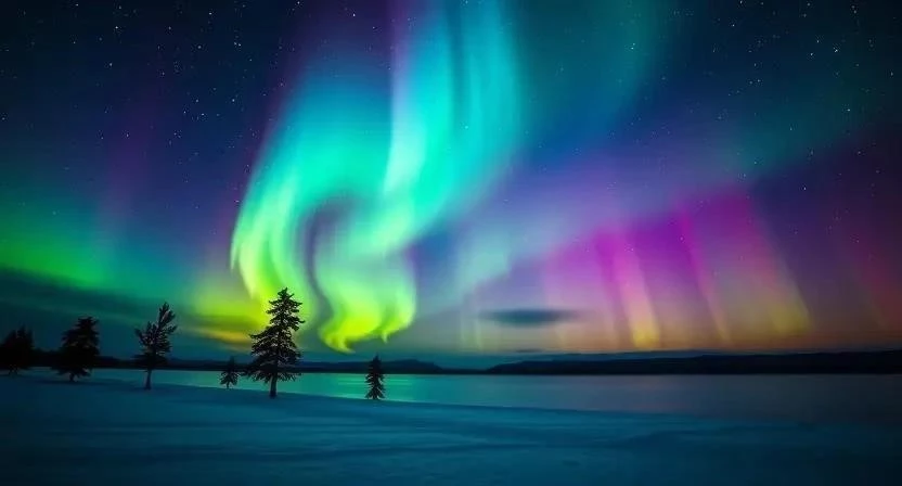 Северное сияние (Арктика/Субарктика): Световое шоу в небе, вызванное взаимодействием солнечного ветра с магнитным полем Земли. Я мечтаю увидеть северное сияние своими глазами!